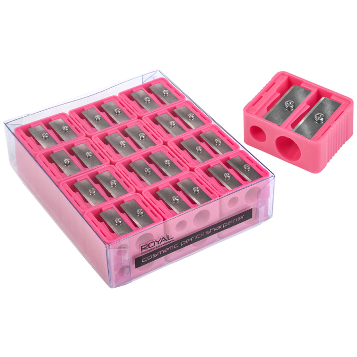 Royal Cosmetic Connections Duo Pencil Sharpener Pack Of 24 24 x Pink Duo Sharpeners Per Pack Comes With High Grade Stainless Steel Blades Perfect For Sharpening Eye And Lip Pencils = 24p Each Made In China EAN Number: 5022638001759