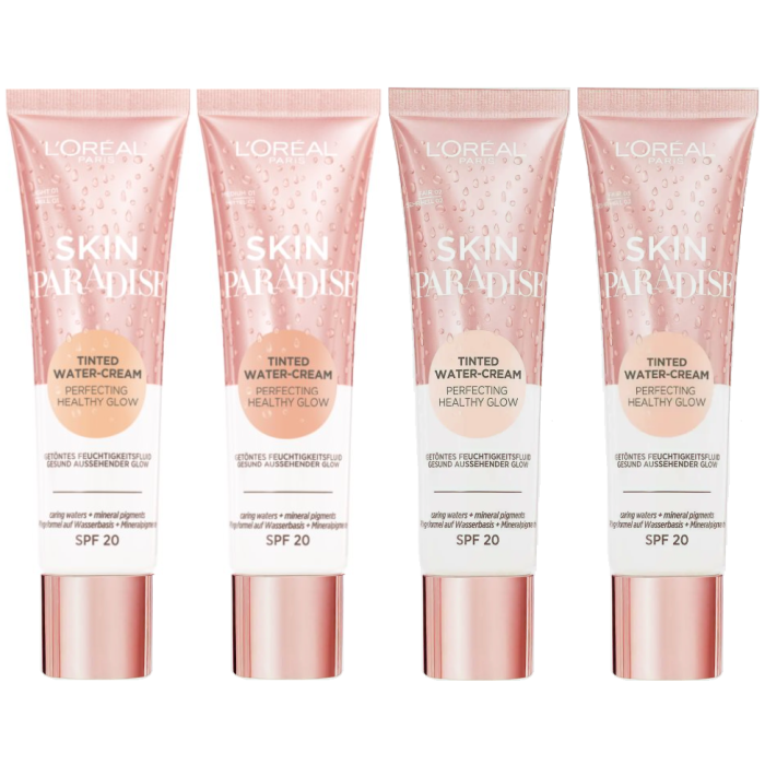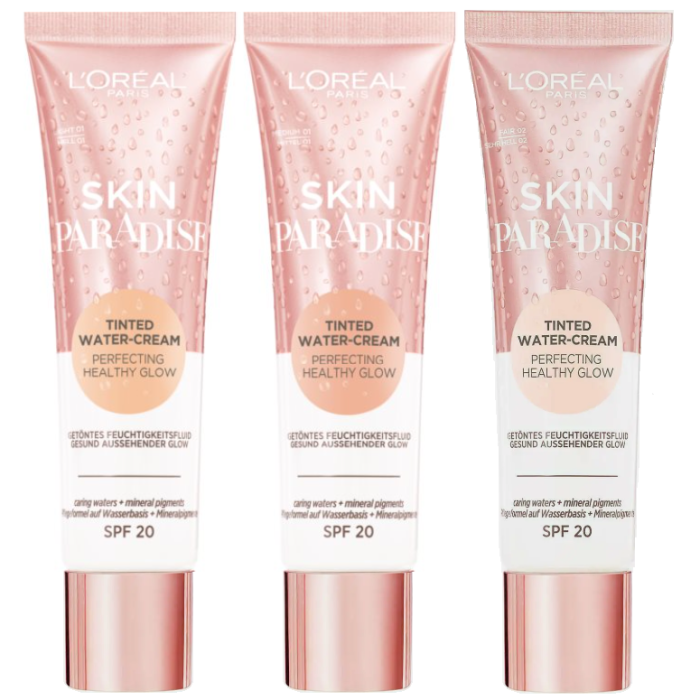 L'Oreal Skin Paradise Tinted Water Cream Quenches Skin With Moisture And Tones Up Complexion For A Perfecting Healthy Glow Natural Radiant Finish With Up To 24 Hours Hydration 70% Water Infused Blend With Aloe Vera And Witch Hazel Oil Free, Won’t Clog Pores And Suitable For Sensitive Skin 30ml Tinted Water Cream Tube Made In France 01 Medium EAN Number: 3600523880126 02 Fair EAN Number: 3600523880133