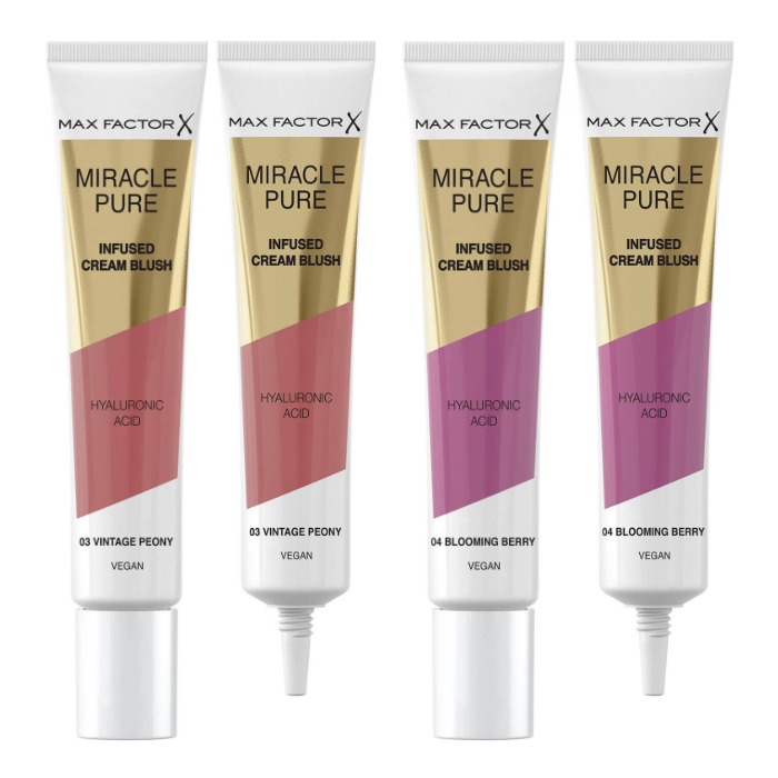 Max Factor Miracle Pure Infused Cream Blush Lightweight Cream Blush Infused With Moisturizing Complex Including Hyaluronic Acid Dewy, Radiant Finish That Lasts All Day 15ml Cream Blush Tube Individually Sealed Shades As Pictured Made In Italy 03 Vintage Peony EAN Number: 3616303184292 04 Blooming Berry EAN Number: 3616303184308