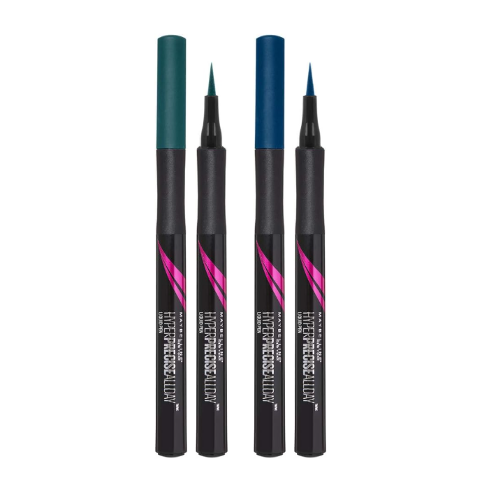 Maybelline Hyper Precise All Day Liquid Eyeliner Pen Long Wearing, Water And Smudge Proof Eyeliner Ultra Fine Tip That Delivers The Most Defined, Precise Line 1ml Liquid Eyeliner Pen Shades As Pictured Made In Germany Jungle Green EAN Number: 3600531047788 Parrot Blue EAN Number: 3600531047801