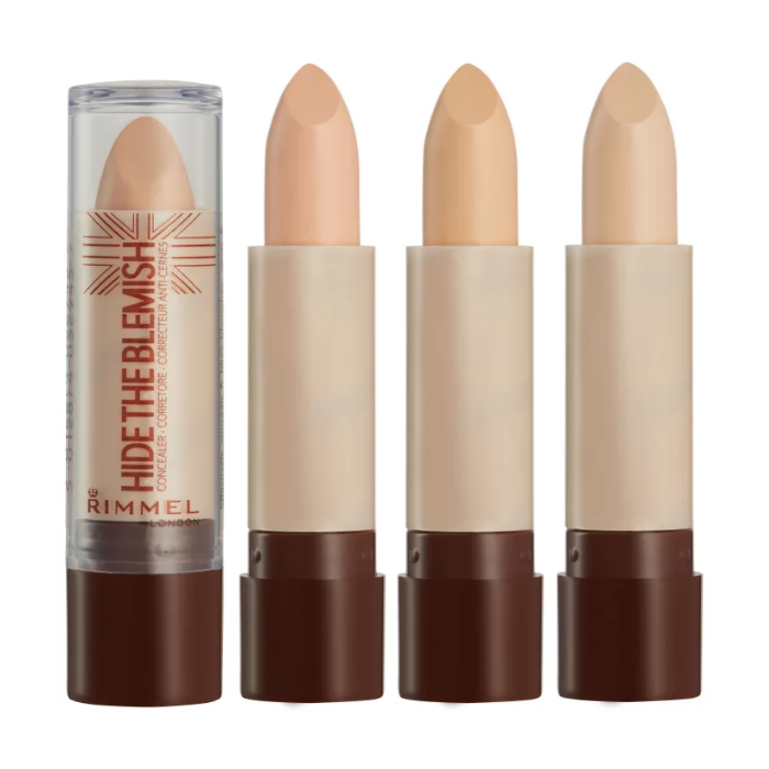 Rimmel Hide The Blemish Concealer Pack Of 3 Effectively Conceals & Blurs Blemishes, Spots & Dark Under Eye Circles 4g Twist Up Concealer Stick Sealed In Packs Of 3 Shades As Pictured = £1.65 Each Made In UK 001 Ivory EAN Number: 5012874022441 002 Sand EAN Number: 5012874032945 004 Natural Beige EAN Number: 5012874033065 103 Soft Honey EAN Number: 5012874125456