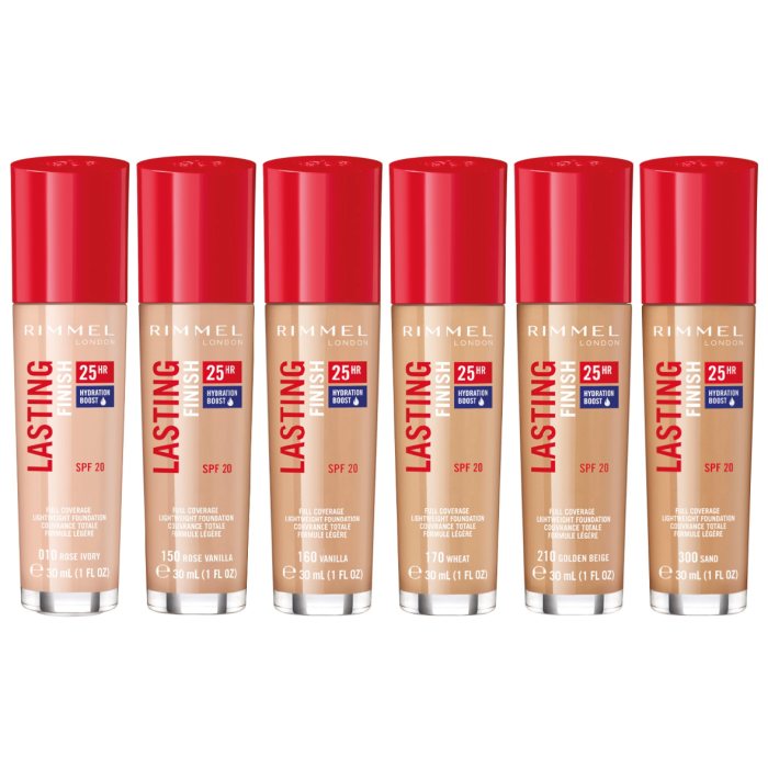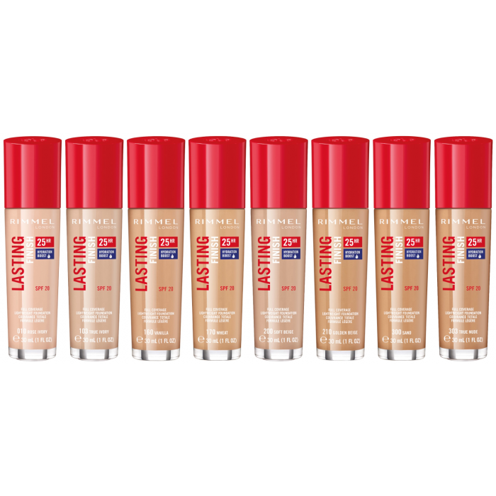 Rimmel Lasting Finish 25HR Hydration Boost Foundation Pack Of 3 Full Coverage Lightweight Foundation Longwear, Liquid Formula That Blends Seamlessly Into Skin Sealed In Packs Of 3 Shades As Pictured Was £9.75, Now Only £8.25 (£2.75 Each)