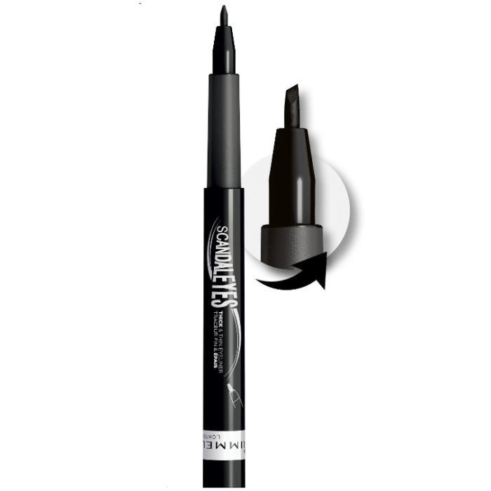 Rimmel Scandaleyes 24HR Thick & Thin Eyeliner Pen 001 Black Thick Or Thin Line With 3D Applicator Waterproof, Intense Colour That Lasts Up To 24 Hours 1.1ml Micro Eyeliner Pen Made In Germany EAN Number: 3614222890928
