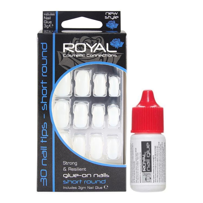 Royal Cosmetic Connections Short Round Nail Tips Strong & Resilient Glue On Nails 30 Nail Tips & 3g Glue